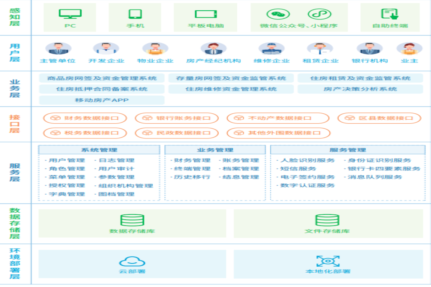 依托于政府深化“放管服”改革,深入推进“互联网+政务服务”的要求,以房屋全生命周期管理为基础,综合利用大数据、AI等先进技术,按照自顶向下的设计理念,实现从房地产开发、房产交易、房产服务的闭环管理,助力各地房产管理部门服务模式创新。